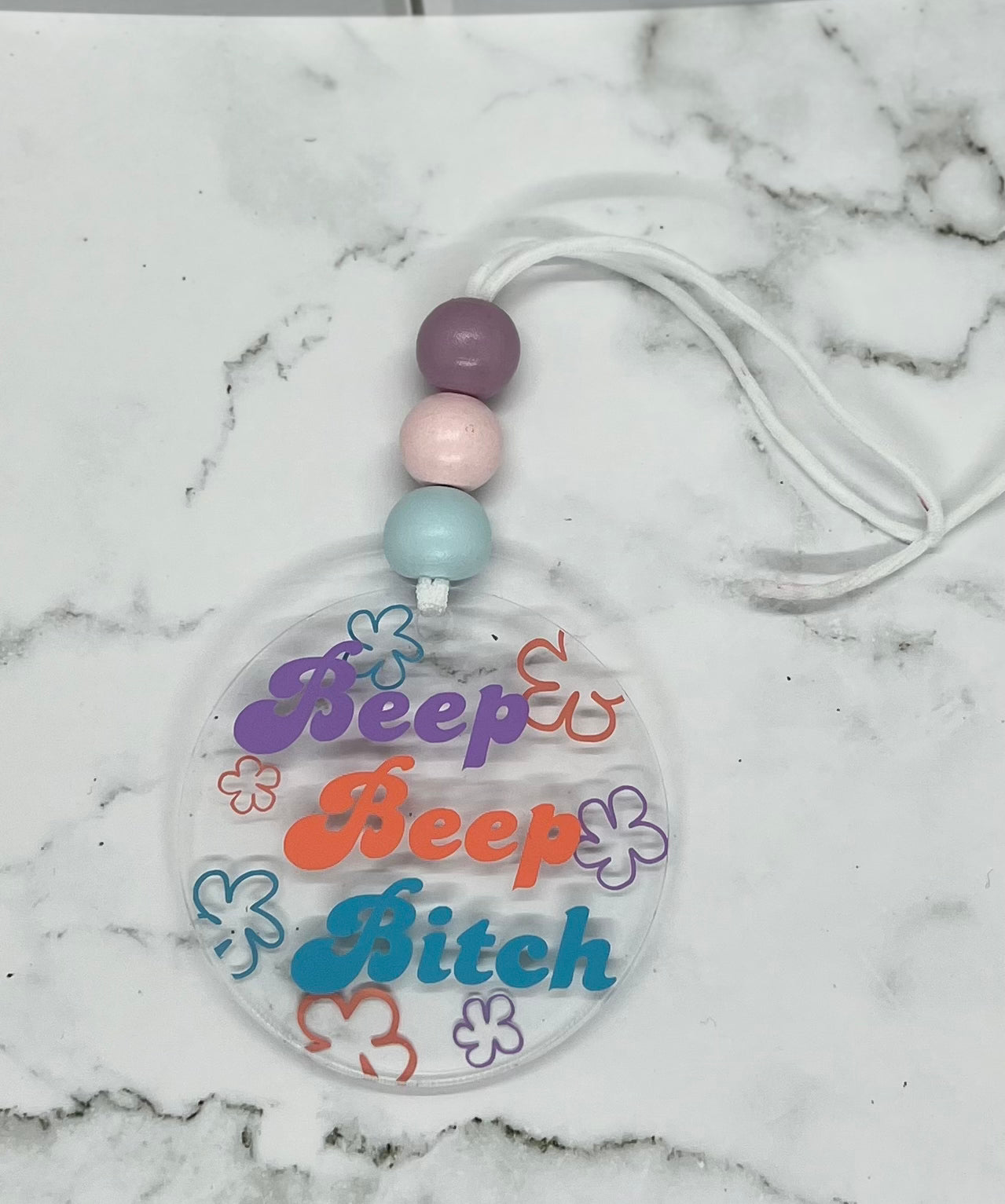 Add this adorable acrylic charm to your rear view mirror!