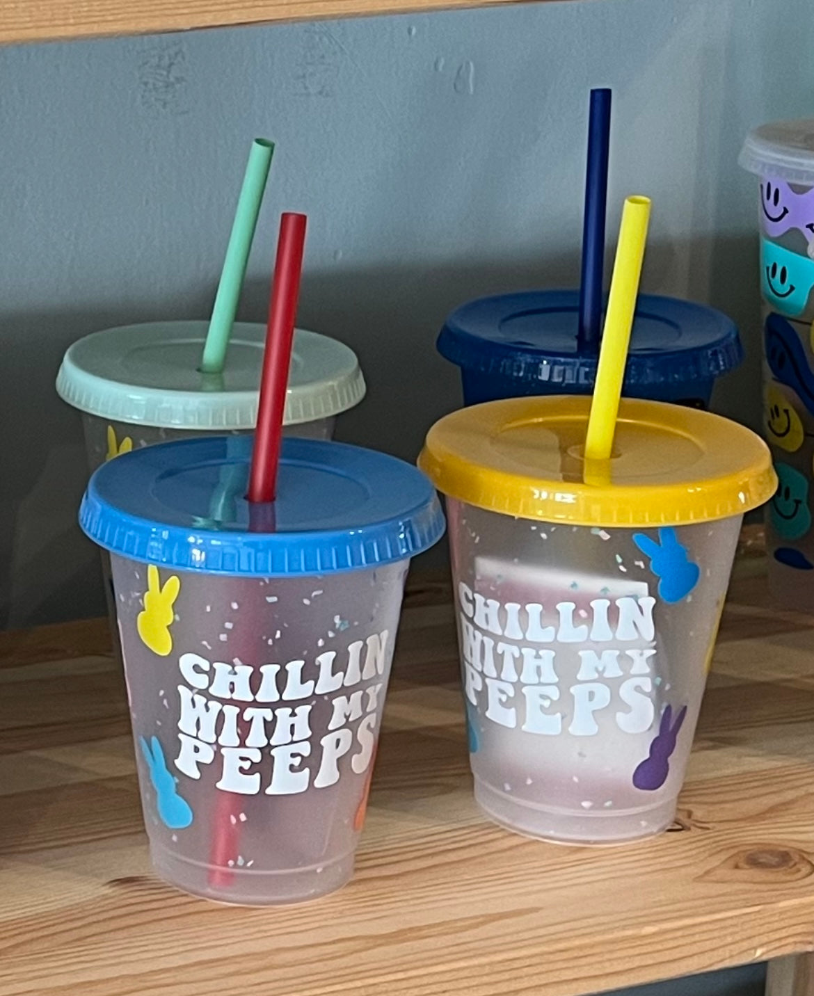 Plastic reusable cold cup with lid and straw 16OZ (473ml) ( COLOR OF LID AND STRAW IS PICKED RANDOM - CUP IS A CONFETTI CUP)