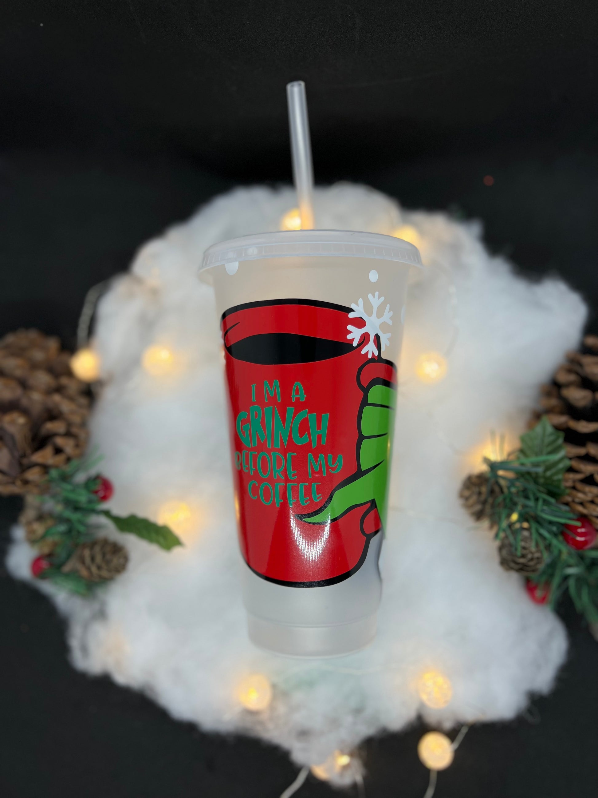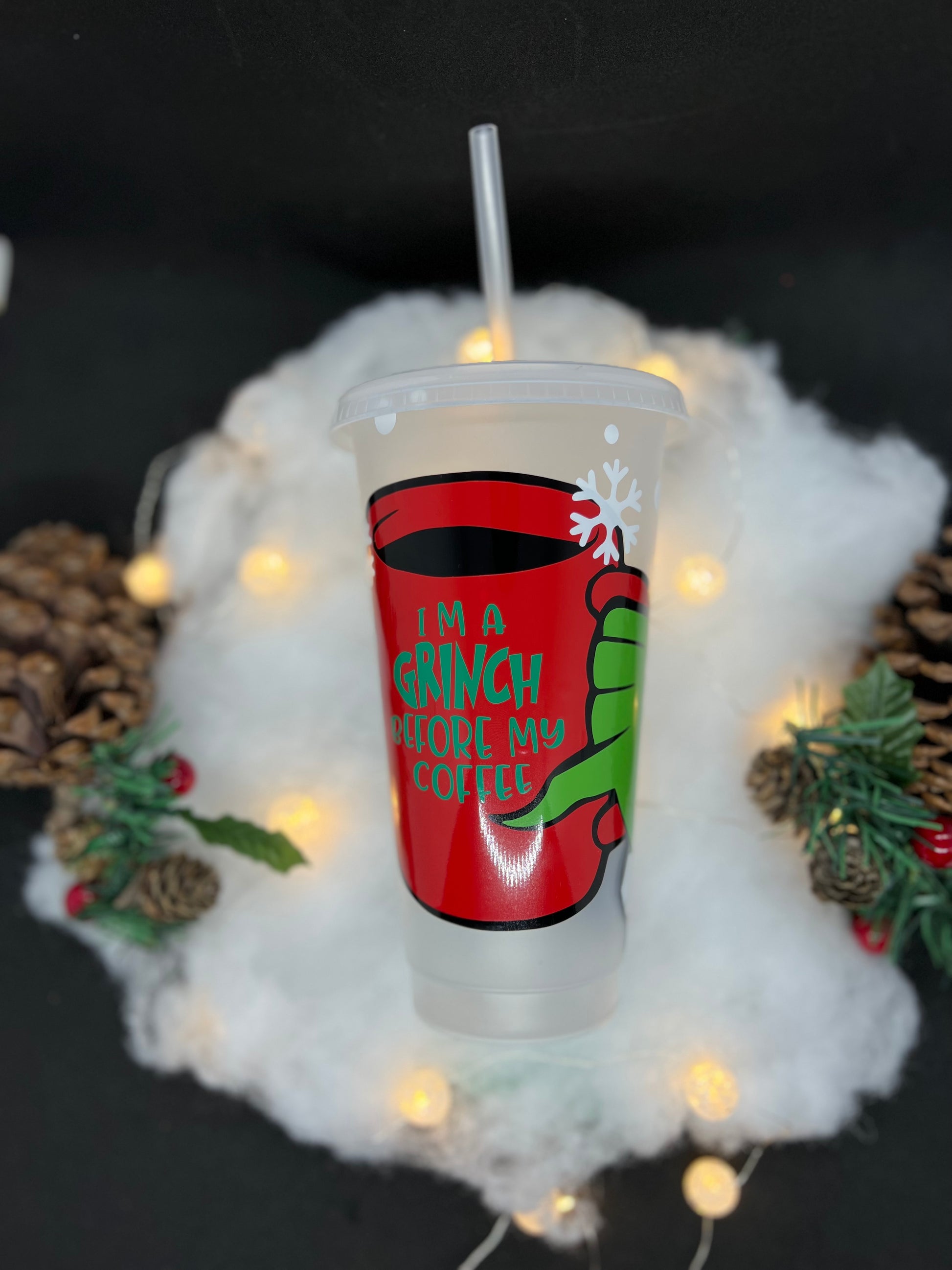 Plastic reusable cold cup with lid and straw 24 OZ (709ml)