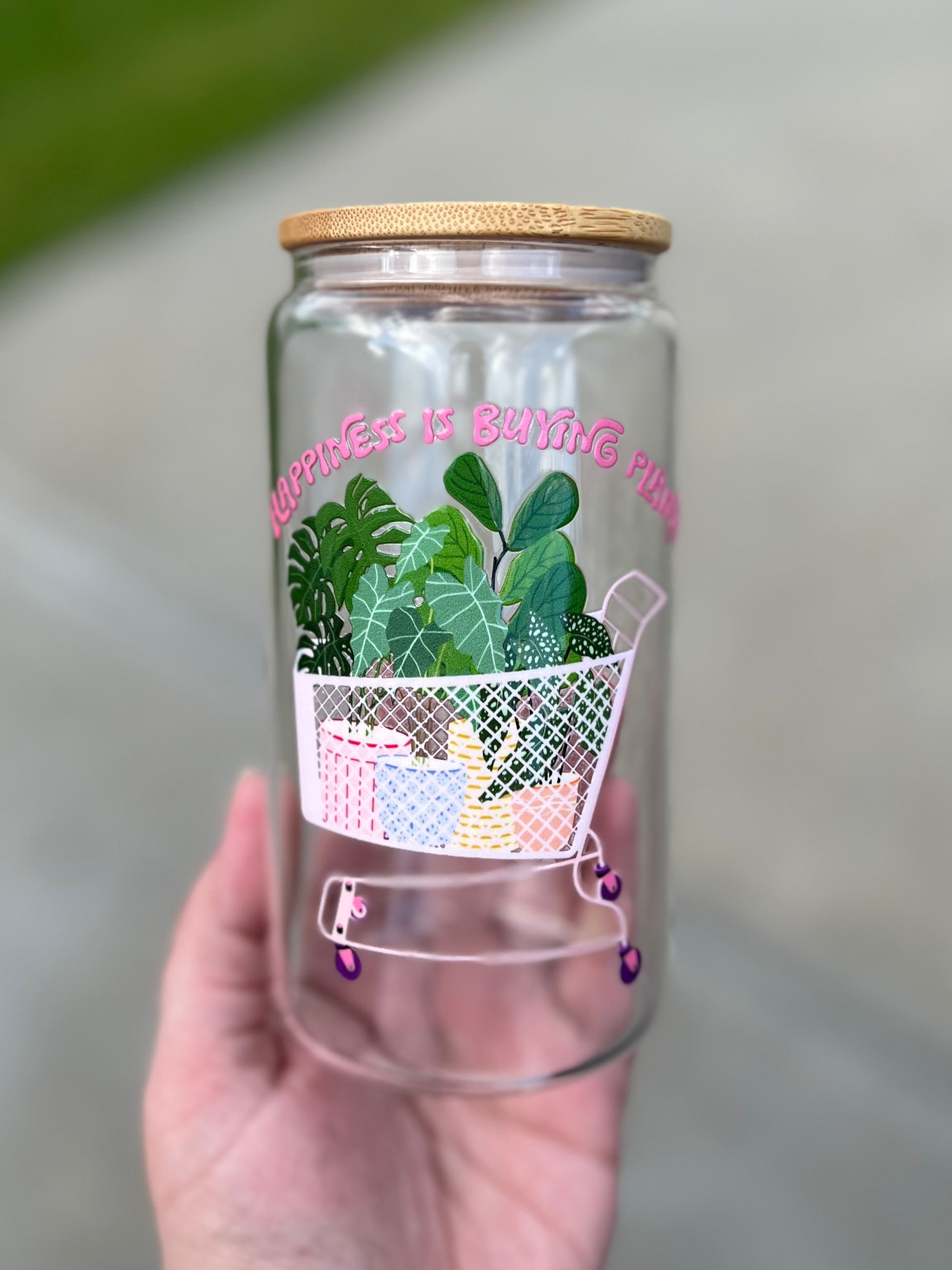 16 OZ beer can glass comes with plastic straw and bamboo lid.